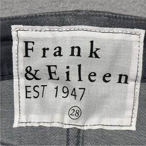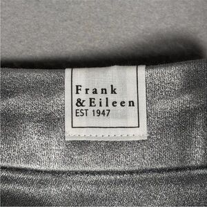 The Frank and Eileen Sligo Skinny Jeans in Metallic Silver are a stylish and versatile addition to any woman's wardrobe. These mid-rise jeans feature a slim fit, zip and button closure, and a 26-inch inseam. The saw hem adds a unique touch to these solid silver jeans, which are crafted from a blend of polyester and cotton for stretch and comfort. Perfect for a preppy look, these jeans have a medium wash and are adorned with the brand's logo accents. The size 28 waist and regular fit make them a flattering choice for everyday wear.