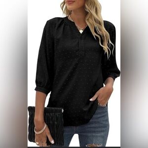 Women’s Bequemer Laden Summer V-Neck 3/4 Sleeve Blouse Swiss Dot Tunic Top