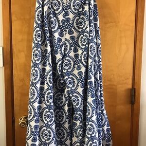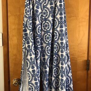 Step out in style with these elegant blue and white wide leg pants with a slit on the sides. Perfect for any occasion, they offer both comfort and sophistication. Pit to pit 15inch