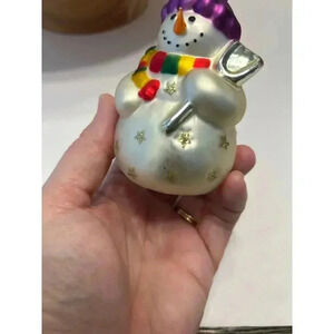 3 Partylite Snowman Glass Christmas Ornaments Mother, Snowbell Boy & girl EUC