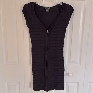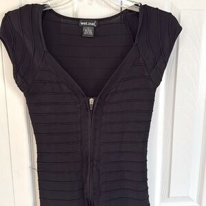Wet Seal Rich Black Bandage Dress - Zipper Front- V Neck- Gently Worn - Size S