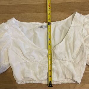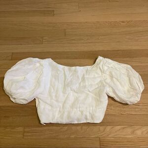 Olivaceous Cropped Pirate Puff Sleeve White Blouse