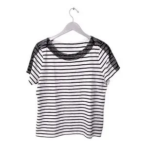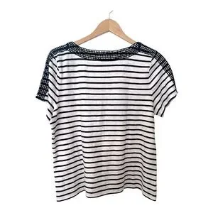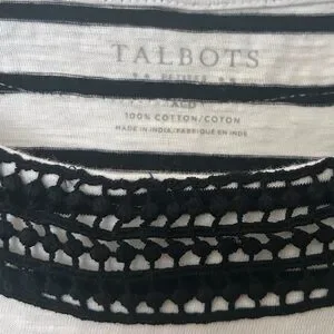Talbots Petites Black & White Stripes Crochet Trim Size X Large