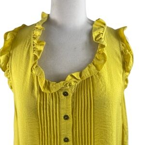 Chic yellow dress with ruffle neckline and button details. Great for a warm summer cruise or a day at the beach, Size 10
