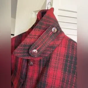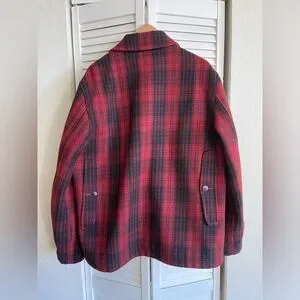 Classic Mackinaw plaid design with button front. Features multiple pockets for convenience. Ideal for layering. In pristine condition. Pit to Pit is 24inches sleeve length is just a tad over 26inches