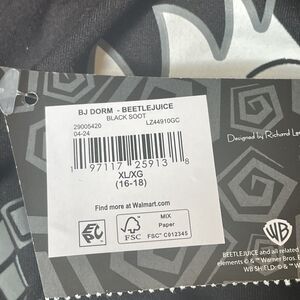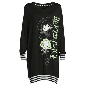 This Warner Bros. Beetlejuice Lydia Sleep Shirt is a black and white long sleeve sleep shirt in size XL. Featuring a Ghost character from the Beetlejuice movie, it has a crew neckline and is made of polyester and spandex. With a movie and horror theme, this sleepshirt is perfect for the winter, fall, and spring seasons. Perfect for fans of Beetlejuice looking for comfortable sleepwear.