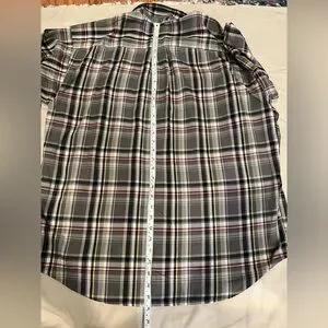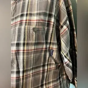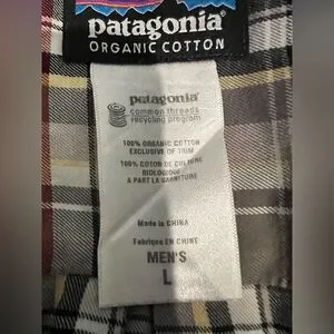 The product is a Patagonia men's large organic cotton long sleeve plaid button-down shirt. Made from high-quality cotton and featuring a plaid pattern, this shirt is both comfortable and stylish. The regular fit and button-down collar add to the classic look of the shirt, making it suitable for casual or more dressed-up occasions. The multicolor design adds a pop of color to any outfit, while the long sleeves provide extra warmth for cooler days. Perfect for any man looking to add a sustainable and fashionable piece to their wardrobe.