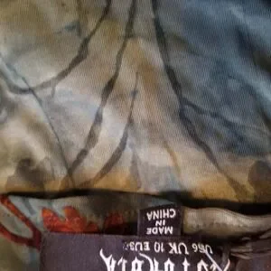 - Green tie-dye effect pattern with a glowy orange-brown flocked velour floral design