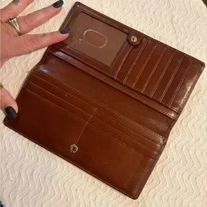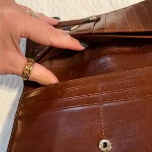 Sophisticated Brahmin clutch in chestnut leather. Ideal for essentials.