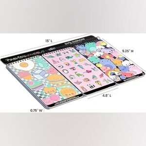 Set of three spiral notebooks with vibrant designs. Features cute animal and food illustrations. Perfect for creative projects.