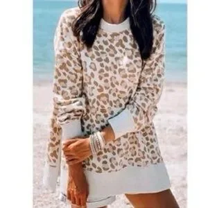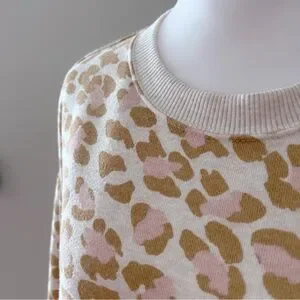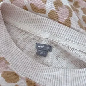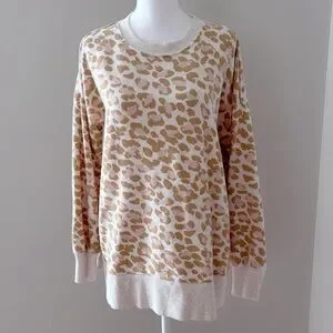 Aerie Pink & Tan Leopard Print Crewneck Sweatshirt Loose Cozy Soft Lounge Top