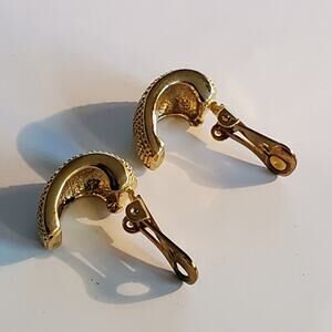 Vintage Gold tone metal chunky slip on earrings 1" Excellent condition