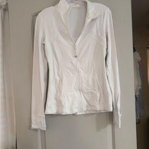 Elegant cream jacket with a sleek zip-up design. Ideal for versatile wear. Only worn once no stains.