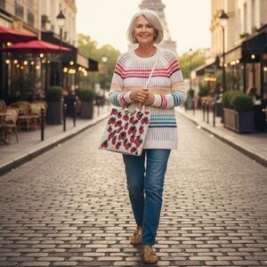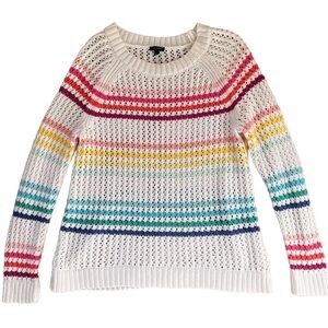 Talbots Rainbow Open Stitch Raglan Happy Stripe Sweater MEDIUM