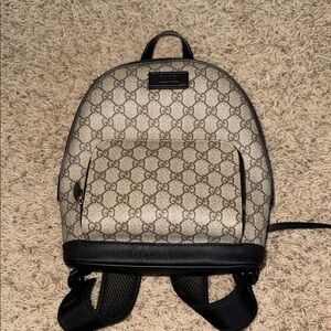 Stylish Gucci backpack with GG canvas design. Features beige monogram and black leather accents. Compact and chic with adjustable straps. ππ»ππ»ππ»