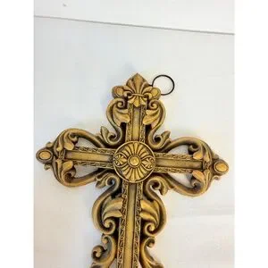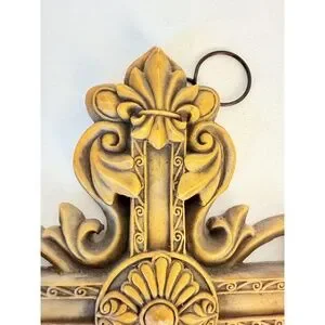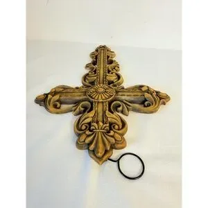 Ornate Gold Decorative Floral Fleur-de- lis Hanging Hook Baroque Wall Cross