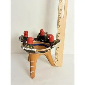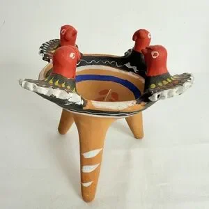 Multicolor Painted Turkey Tripod Copelero Cup Figurine Mexican Pottery