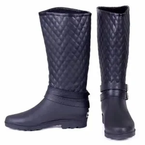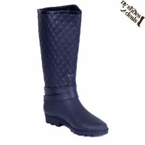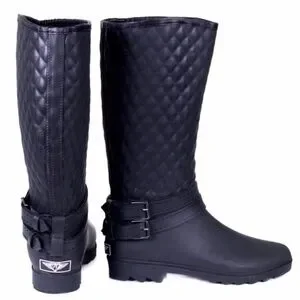 Women Rainboots, Black Quilted Rider Rubber Rain Boots, NEW