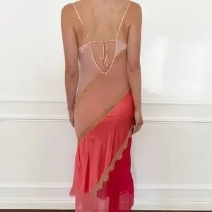 ( tags- pastel pink red lace romantic vintage silk Victoria’s Secret maxi dress bridal honeymoon photoshoot rare cowl neck fairy princess feminine sheer delicate summer spring vacation collection 2000s y2k )