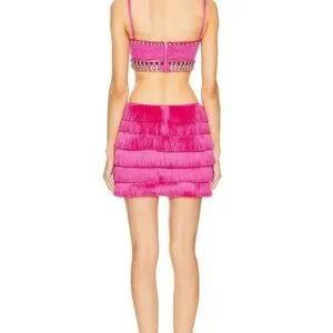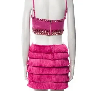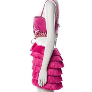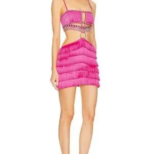 Patbo hand beaded jeweled pink fringe cut out dress XS