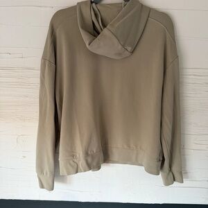 Effortlessly minimal and modern — this neutral khaki Mango sweater features a relaxed, slightly boxy fit with a half-zip front and structured hood. Crafted from soft, medium-weight fabric that holds its shape beautifully while feeling smooth against the skin. Perfect for layering or styling with tailored trousers or leggings for a casual luxe look.