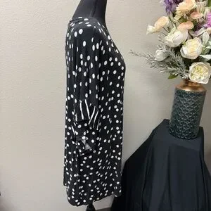 Cato 26/28W Black White Polka Dot Ruffle Sleeve Tunic Top Plus Size Chic