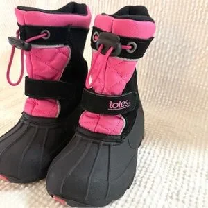 Totes Girls Snow Boots Black Pink Waterproof Winter Size 7