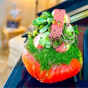 Add a touch of elegance with these stunning gold and orange pumpkin earrings. Perfect for any occasion. 4 pairs available.