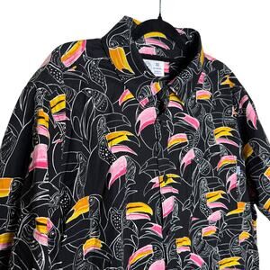 Hurley Short Sleeve Tropical Toucan Print Button-Up Shirt Size XXL Summer Top