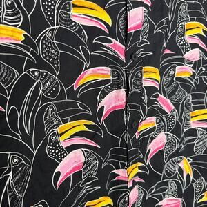 • Color: Black base with pink, yellow, orange & white toucan tropical print