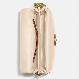 Elegant Coach shoulder bag. Soft cream color. Stylish buckle detail.