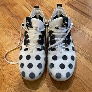 These adidas Harden Vol. 5 Futurenatural White Polka Dot basketball shoes are stylish and functional. They have only been worn on the basketball court. They are in very good condition. Perfect for a basketball player without breaking the bank!