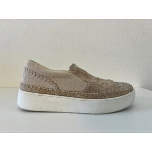 Johnny Was Floral Cecilia Sand Suede Slip On Sneakers Womens Size 7.5