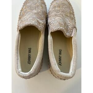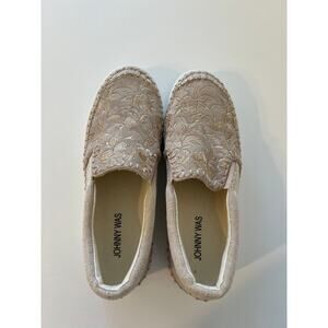 Johnny Was Floral Cecilia Sand Suede Slip On Sneaker Women Size 7.5 M Fairy Boho