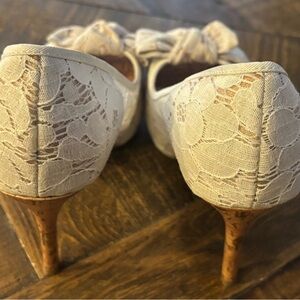 Christian Siriano Cream Lace Heels with Cork Heel. Great Condition!