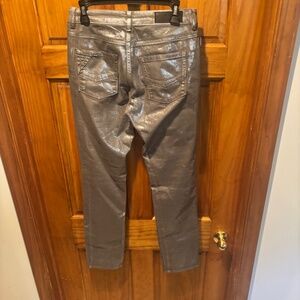 Zadig and Voltaire Eva Argent Deluxe Silver Foil Printed Jeans. Zip and button closure. Women's size 28. Gently used with no flaws.