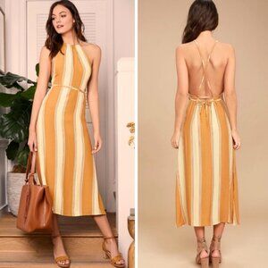 Faithfull The Brand Tuscany Dress Yellow Stripe Midi Womens 2