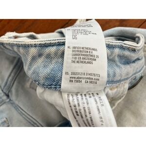Keywords: Hollister Jeans, Mom Jeans, High Rise, Distressed Denim, Light Wash, Cropped Hem, Casual Style, Streetwear, Everyday Wear, Comfortable Fit, Vintage Wash, Teen Fashion, Y2K Aesthetic