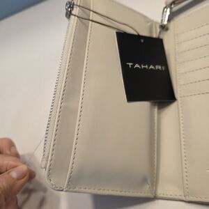 Tahari Bifold Wallet Wristlet NEW Multisection Cloud White Pebbled Faux Leather. Tag attached MSRP $48. Nonsmoking Seller. Ready for immediate shipment.