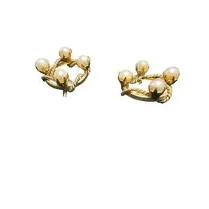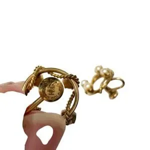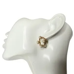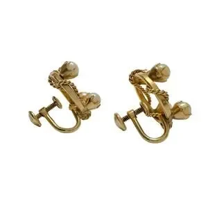 Beautiful vintage mid century 1/20 - 12 K gold filled screw back earrings. Petite gold rings, one solid with another rope-looking strand woven around the solid one. 4 white pearls. Vintage but timeless style.
