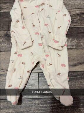 Soft pink footed one-piece pajamas featuring a whimsical white unicorn print. Cozy zipper front for easy changes. Gentle, breathable fabric keeps baby comfortable through the night. Cute unicorn motif adds playful charm.