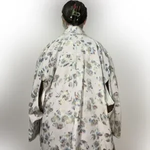 Elegant floral kimono jacket with a beautiful cream base, perfect for adding a touch of sophistication to any outfit.