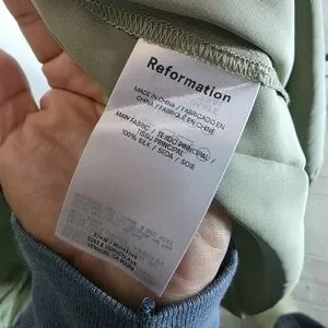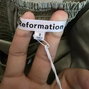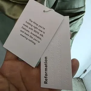 This NWT Reformation Barrow Silk Dress in Artichoke Green Maxi Strapless size 8 perfect condition