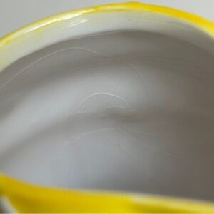 This charming Pier 1 Imports creamer is crafted from dolomite and features a delightful hand-painted design of yellow honeycomb patterns with adorable bees. Perfect for adding a touch of whimsy to your morning coffee or afternoon tea, this creamer is both functional and decorative. Its unique design makes it a great addition to any kitchen collection or a thoughtful gift for someone who loves bees and nature-inspired decor.