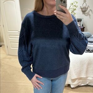 Stay cozy and stylish with this navy blue women's sweater. Perfect for any casual outing.