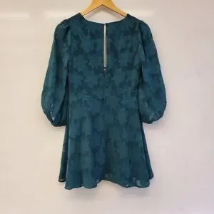 Anthropologie Jacquard Tunic Dress Green Teal Puff Sleeve Size 2P