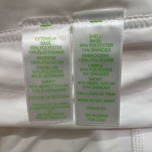 Chic white skirt with pink polka dot pattern. Perfect for casual outings.