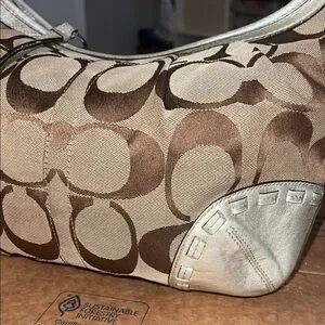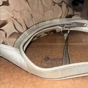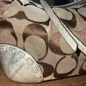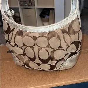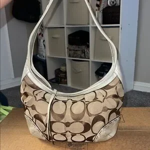 Stylish Coach shoulder bag with signature pattern. Tan and cream colors. Perfect for any outfit. Flaws shown. Open to reasonable offers!