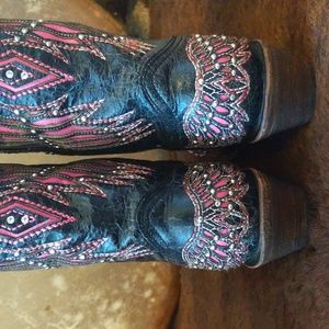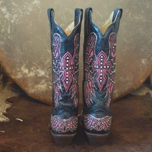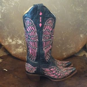 CORRAL A1049 pink/black Wing & cross snip toe blingy cowgirl western boots sz 6