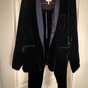 Luxurious navy velvet blazer and jogger pant set. Sleek and stylish design super comfy light weight! Ideal for elegant occasions.